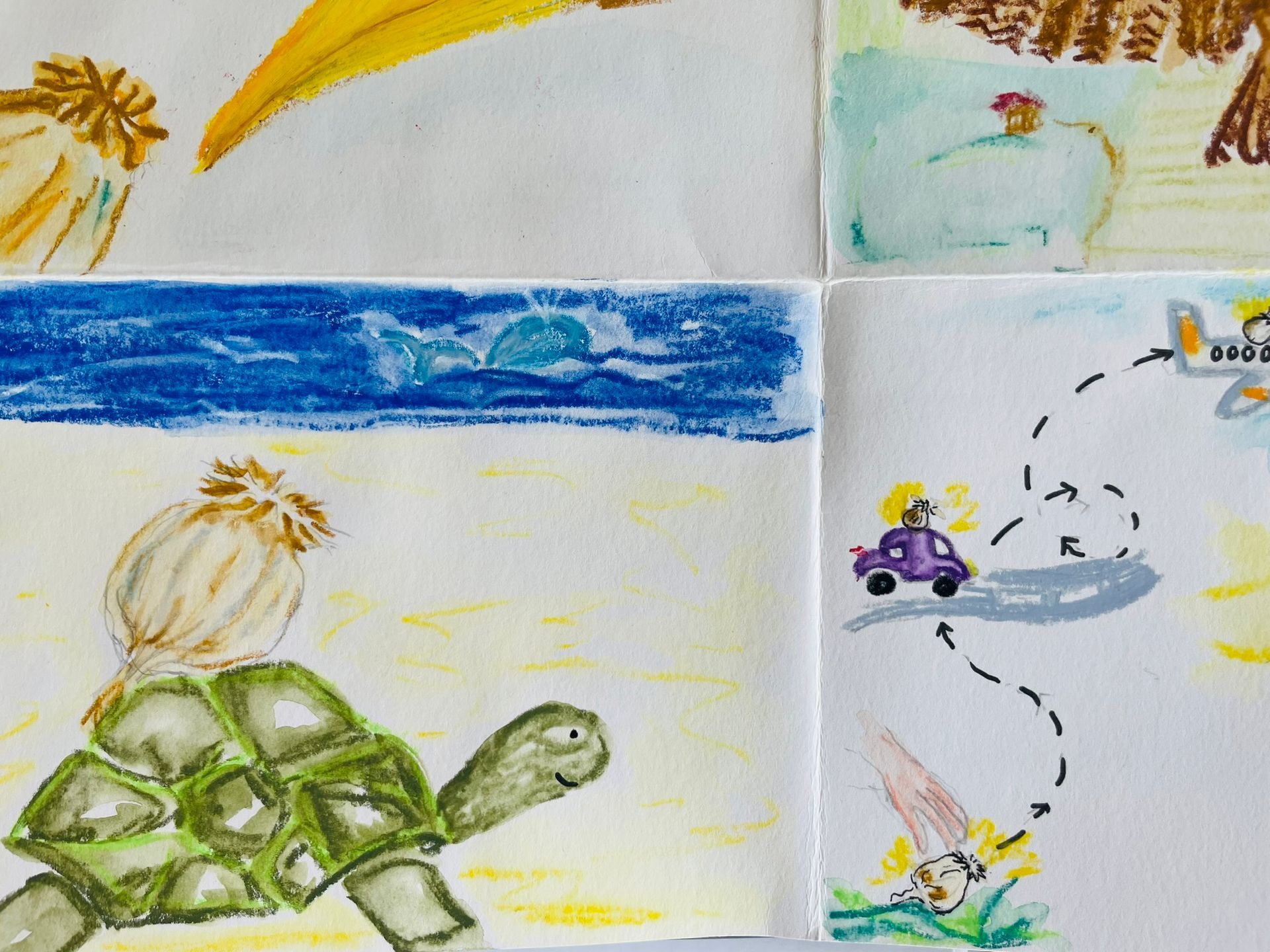 Neben dem Gestalten auf dem Papier mit den verschiedensten Materialien (z.B. Buntstifte, Aquarell-/Wasserfarbe, Gouache, Wachspastellkreiden, u.v.m.) können wir auch unsere Erzählerische Phantasie anregen und entweder mit bildnerischen Mitteln oder auch schriftlich.